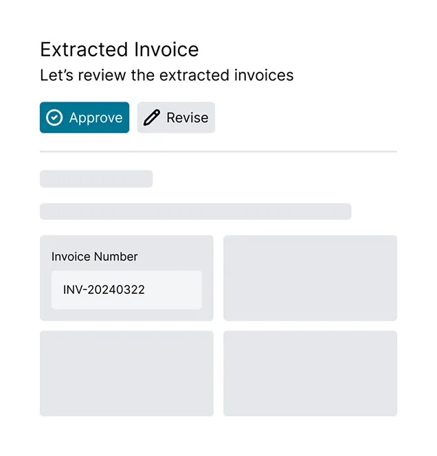 - PDF/image extraction: Extract invoice information using vision models to handle a wide range of file types and layouts.