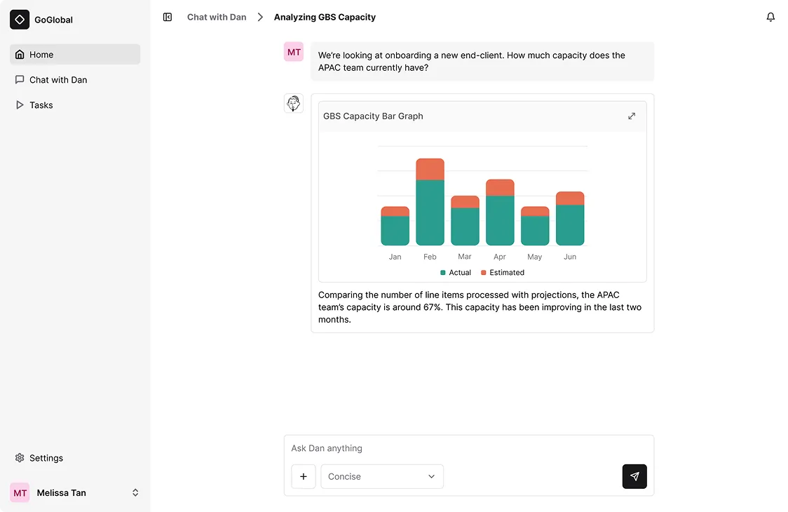 To make this possible, we partnered closely with GoGlobal, a sister company and back-office provider with deep operational expertise. Their teams became both our domain specialists and early testers, helping us ground ideas in real-world workflows and validate concepts.